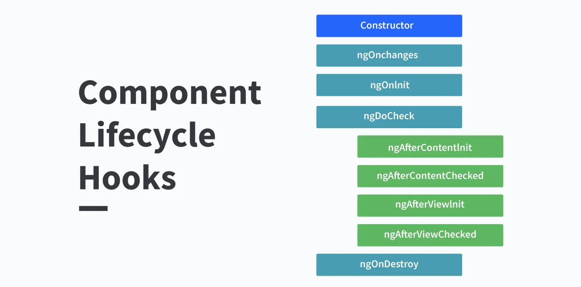 We can implement our change detection algorithm in this hook. ngAfterContentInit( ) It gets called after the first ngDoCheck hook. This hook responds after the content gets projected inside the component.